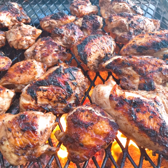 2.  When ready to cook, heat your barbecue to 375 degrees or if using a wood or charcoal grill, heat to grey coals or medium flames.  I used my outdoor wood grill.  Cook the chicken for 40 minutes in total, moving the meat around the grill, so it doesn’t burn.
