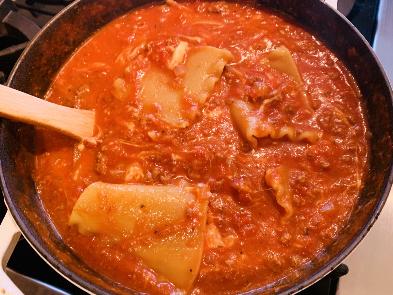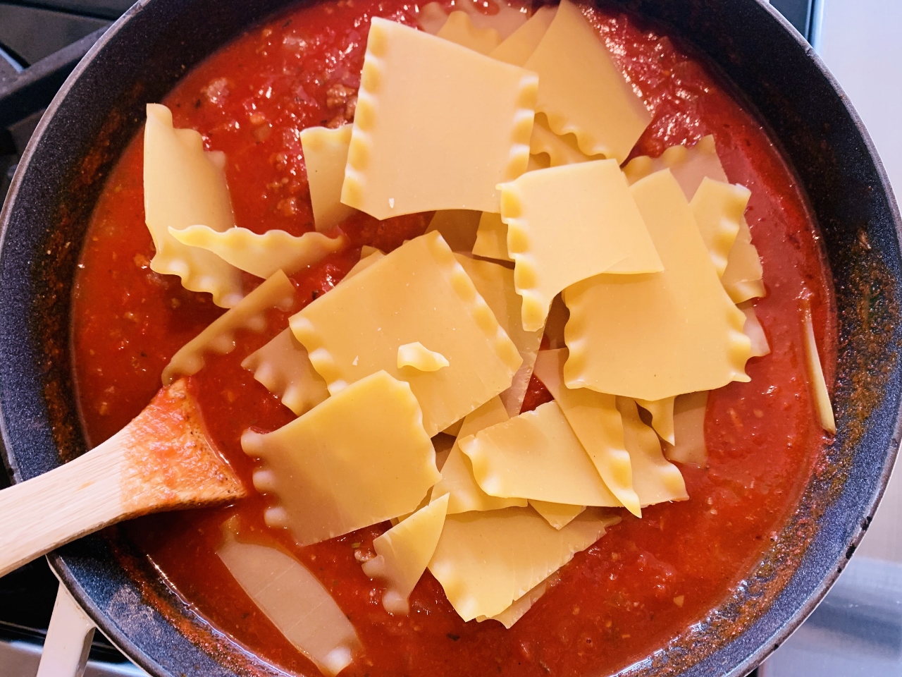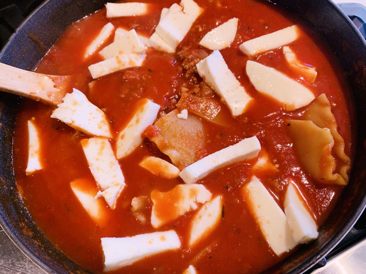 6 dried lasagna noodles, broken into quarters