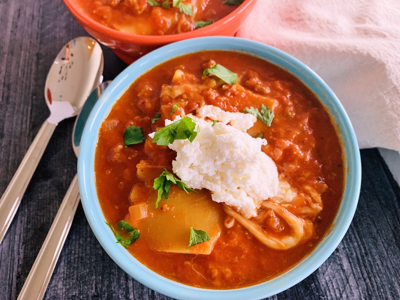 Most families have a classic lasagna recipe, no matter how much you cook, but sometimes it’s fun to swap-out tradition, and give this dish a twist with Mexican, Asian or Scandinavian flair. But, today I’m going Italian, and changing it into soup, with all the familiar ingredients that you enjoy. Lasagna in my house was always made with ground beef seasoned with dried spices, garlic and onions. The noodles came from a box with ridges so familiar, that you’ll recognize them anywhere, and it was loaded with cheeses like mozzarella, ricotta and parmesan.