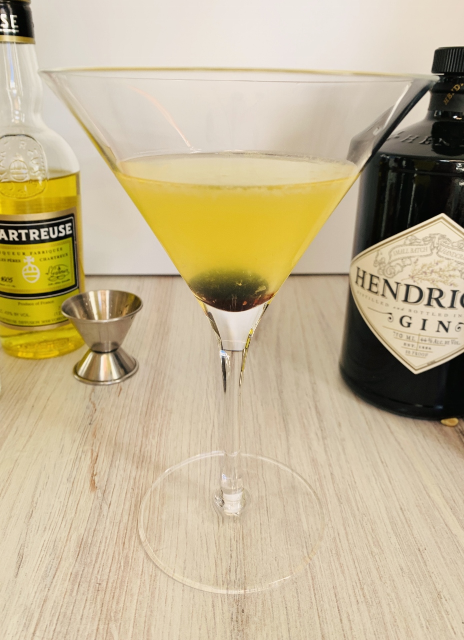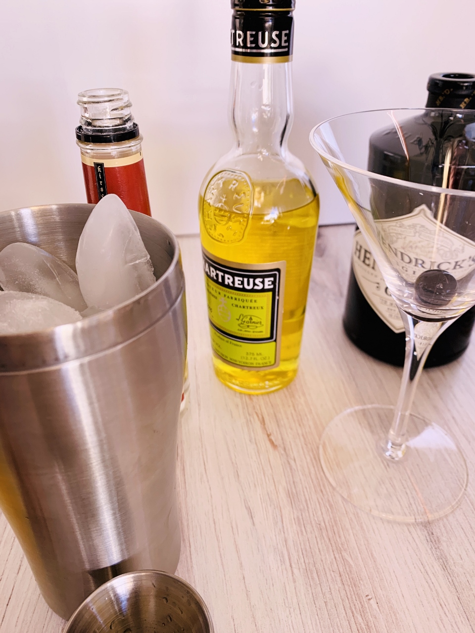 For the holidays, I gave my husband a drink box put together by blogger, David Lebovitz, containing his new book Drinking French and various bottles of alcohol to prepare his recipes. Some of the alcohol, like green chartreuse, were very unique in taste and color, so I decided to research some other cocktail recipes using this liqueur, and make another drink recipe that I thought all of you may enjoy at home.