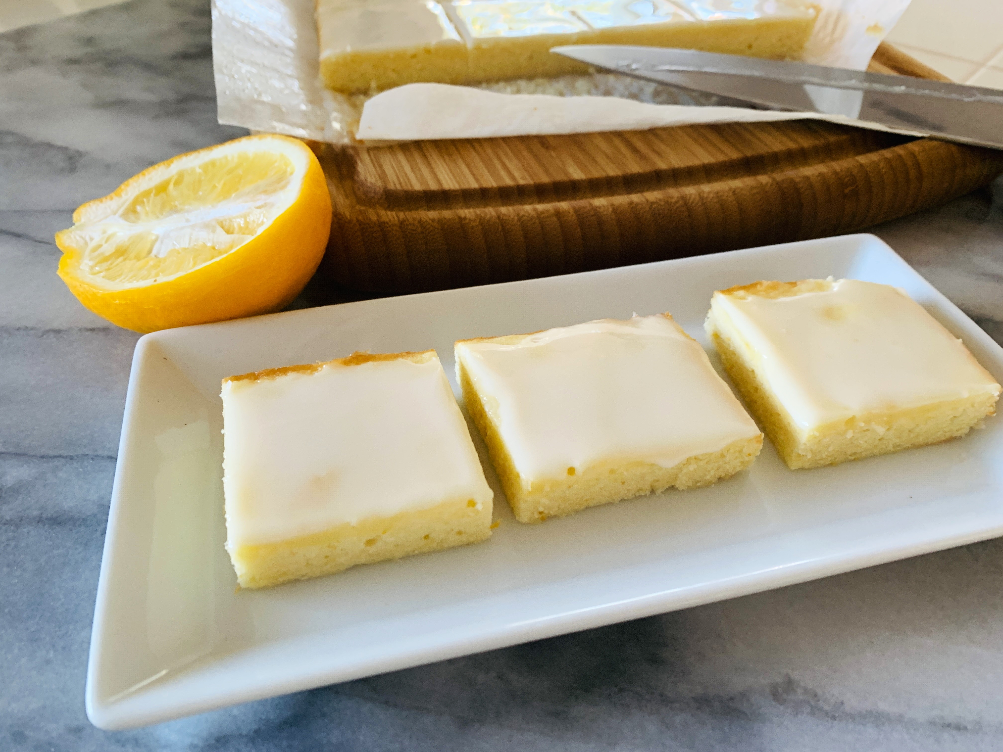 I sliced and served a few blondies to kick-off the weekend and saved the rest for each day to snack on while he was in town.  I can’t say enough how easy these bars are to make and they taste so lemony good that I will definitely put them in my baking repertoire.  They make a great dessert for birthday celebrations or for dinner parties when you want a lemon dessert in no time at all.