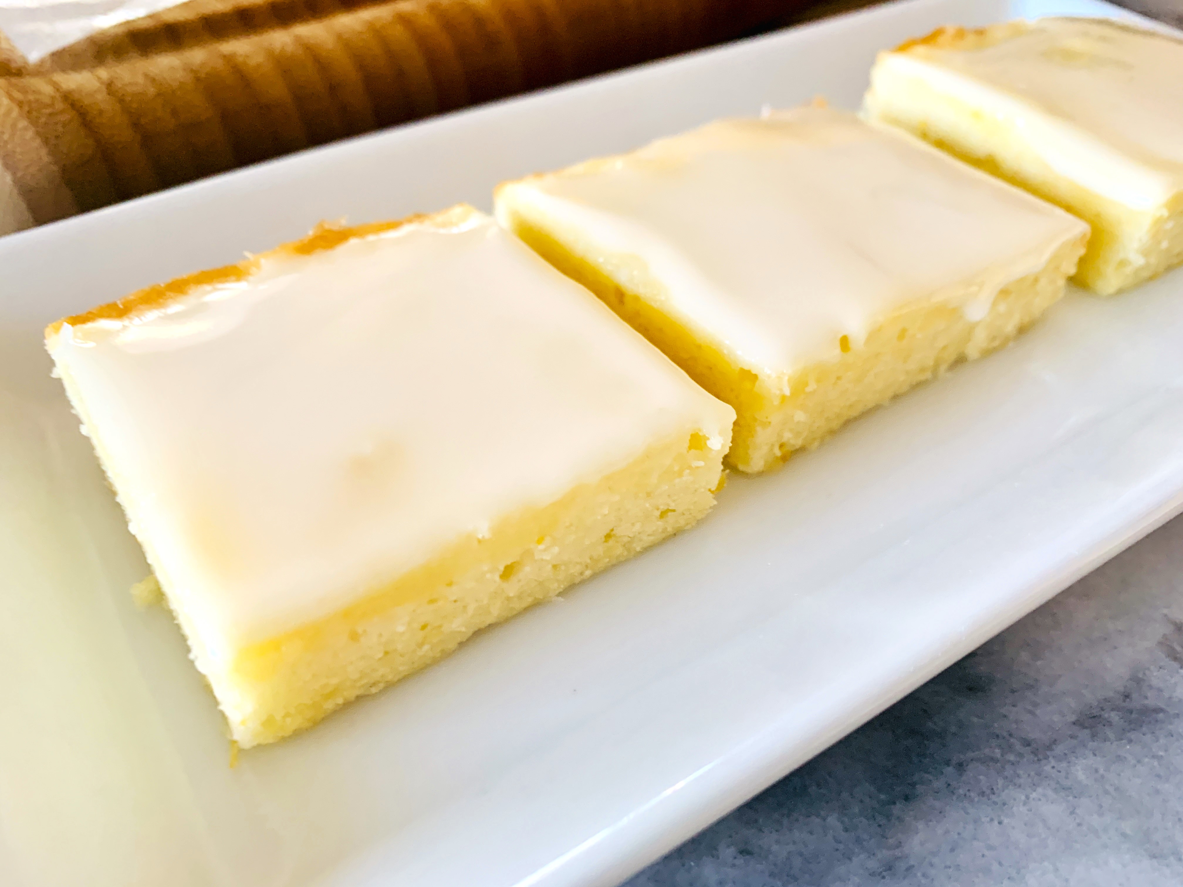 My brother-in-law is in town to celebrate his 60th birthday and he just loves lemon, so I made him these lemon blondies as a pre-birthday dessert when he arrived.  Luscious lemon blondies are a cross between a bar and a cake, but there is no crust or lemon custard poured over top, just a buttery batter with both lemon zest and lemon juice added for some citrus taste.  The whole dessert is made with just a few ingredients and baked in one pan.  A quick glaze is spread over top to create an even sweeter lemon infusion that is super delicious.