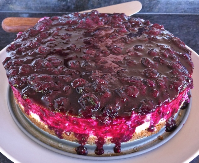 The combination of mildly tart citrus and naturally sweet blueberries make this cake a refreshingly great dessert.  I enjoy the color contrast too – I think it a real show stopper, perfect for parties or family members who are cheesecake lovers like my family.