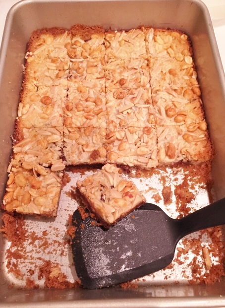 Today, when I make these bars, I add a few additional ingredients that aren’t part of the traditional recipe like; white chocolate chips and mixed nuts, which add a touch of additional magic to the recipe. The combination of chocolate and nuts swirl around your tongue with each bite and remind me of sitting on that lunch bench with my friends all over again.