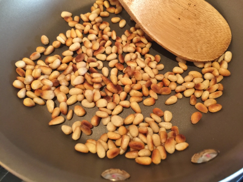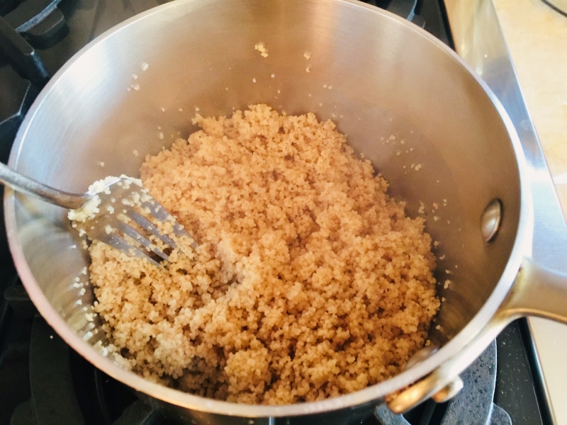 2. When ready to grill, heat grill to 400 degrees, rub grill with oiled cloth. Remove lamb chops from refrigerator and let set on counter, while grill is heating. In a saucepan, add broth and heat until boiling. Add in couscous and salt, stir. Turn off heat and cover with lid. Toast pine nuts in a dry skillet and set aside.