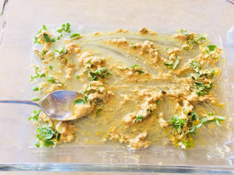 A simple preparation of a paste-like sauce, that really sticks to the ribs, so to speak, is my marinade of choice. This paste is a simple mixture of mustard, fresh herbs, lemon zest and a sprinkling of salt & pepper. Roll the chops around in this mustard base and let them sit in the fridge for a few hours, or up to overnight. This marinade not only enhances the taste, but slightly tenderizes the texture into a supple tangy bite.