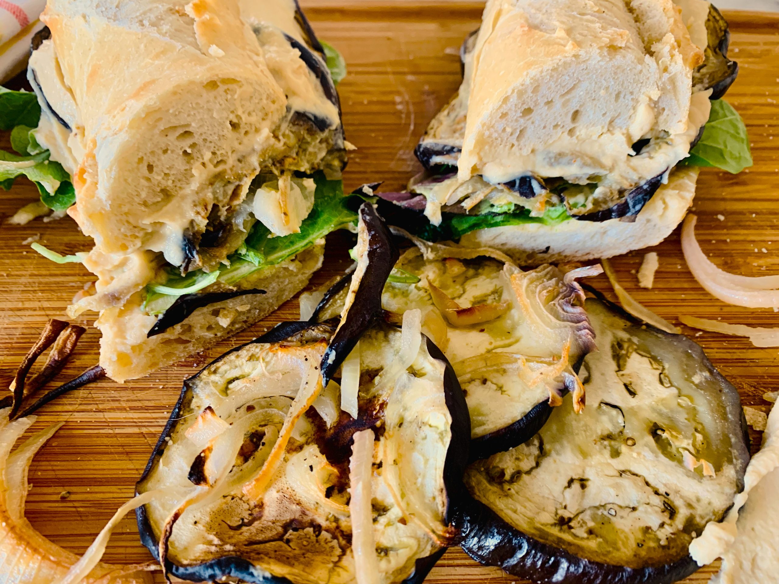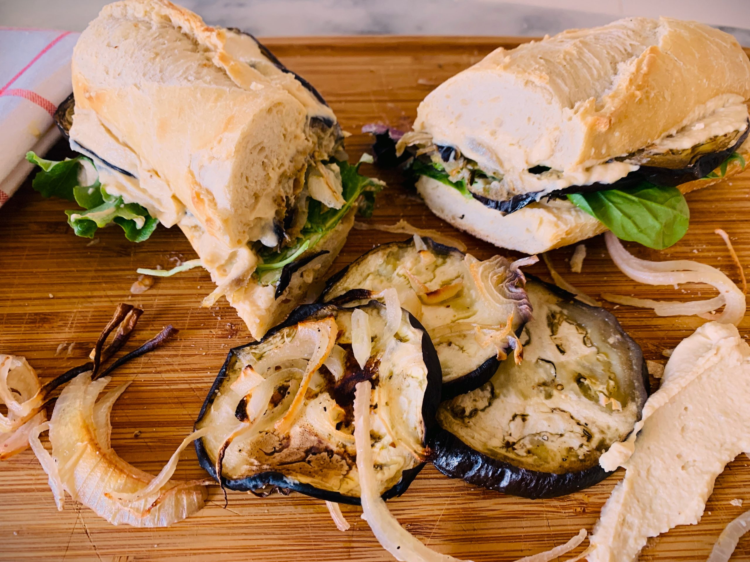 A Mediterranean Roasted Eggplant and Onion Sandwich is what’s on the menu today – sweet, creamy, earthy and crunchy all packed into each and every bite.