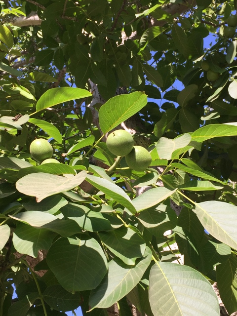 The shaker machine, which grips the walnut tree fifteen feet in the air and rattles the ground like a mild earthquake is how walnuts are extracted from trees. When the walnuts hit the ground, the brushes push the nuts to the side, so they are not crushed when traveling tree to tree. The walnuts are gathered and dried at 104 degrees, then sorted by hand to weed out the “bad nuts.” Trailer bins are filled with fresh walnuts, and transported up the coast for shelling and packaging.