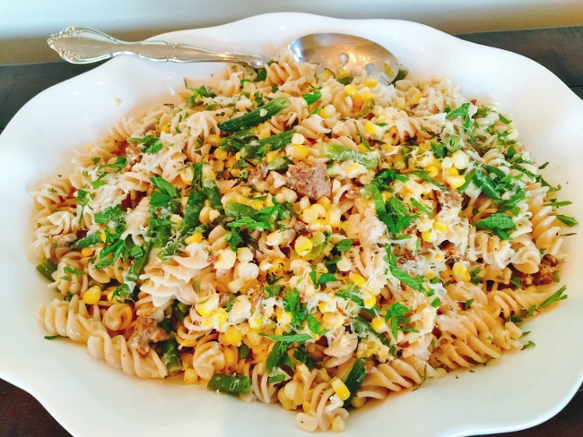 Merguez is a spicy North African sausage made of beef or lamb. The flavors of Merguez are earthy with a hint of heat, which allow it to hold up when combined with other ingredients. In this recipe for Merguez Sausage, Sweet Corn & Green Bean Pasta, I use Merguez lamb sausage, which I prefer, because of its complex flavors that pair nicely with summer corn and fresh green beans.