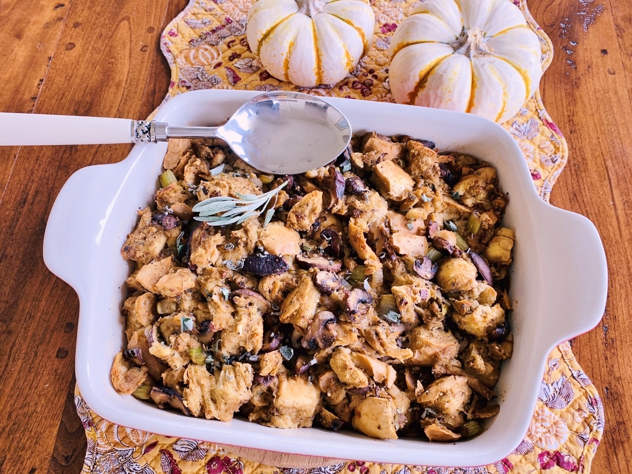 One of the dressing recipes has a southern twist made with cornbread, sweet sausage, and apples, and the other, a vegetarian-style dressing prepared with sautéed mushrooms and tons of fresh herbs. Both of them are flavorful and fragrant and go so well with turkey. I do think homemade dressing this is my favorite side dish of the meal.