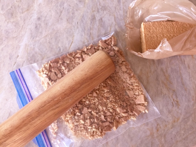 2. Place graham crackers in a baggy and crush with a rolling pin. Place 2 tablespoons graham cracker crumbs into bottom of each jar with fitted lid. Add 1/4 cup blueberries and 1/4 of cream cheese mixture to each jar.