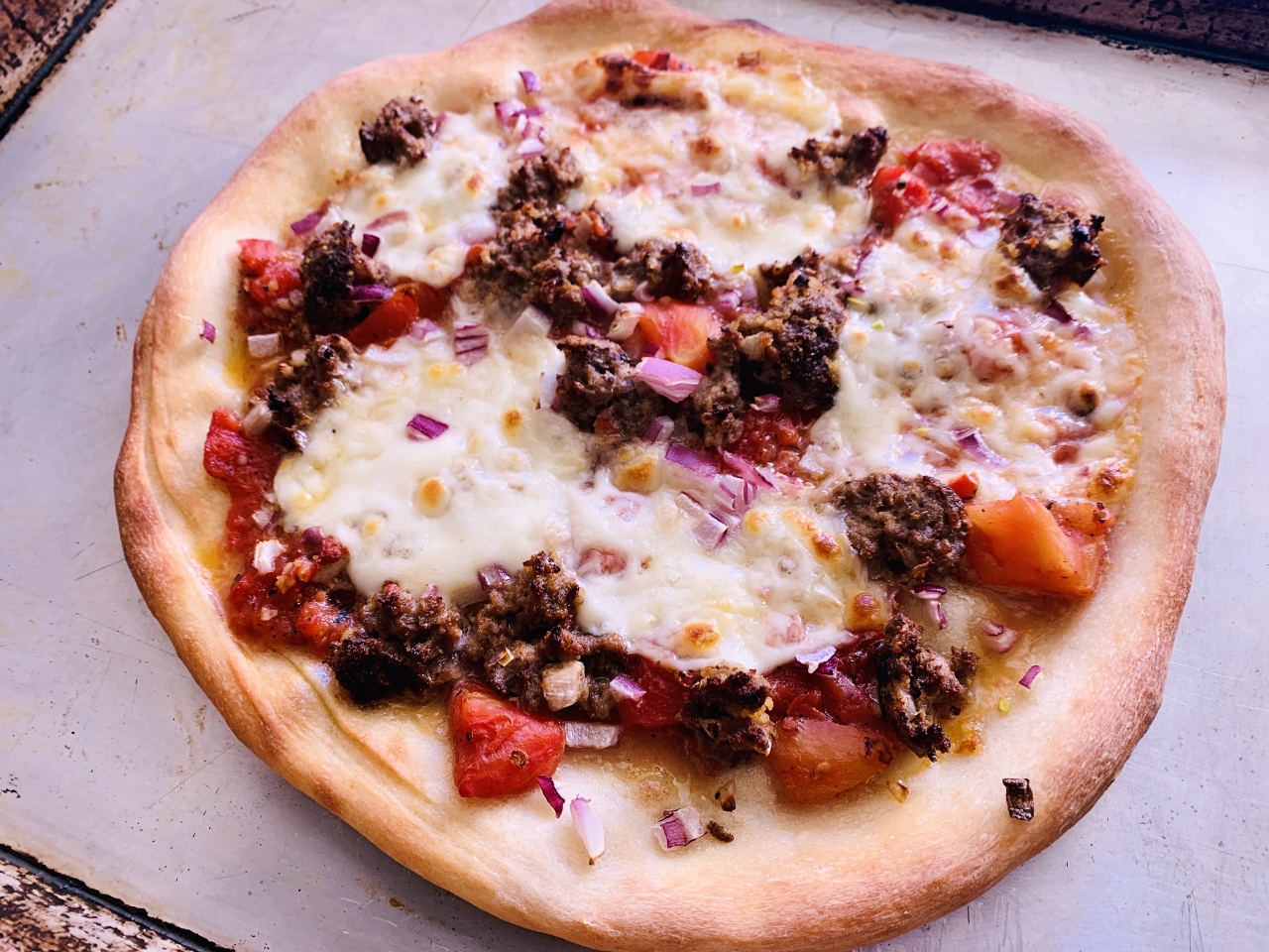 - Bake flatbread for 12-14 minutes or until edges are golden brown and toppings are bubbling. Remove and repeat with second ball of dough. Enjoy!