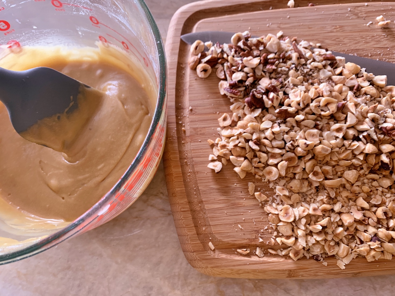 2 1/2 cups hazelnuts, pecans or walnuts, roughly chopped