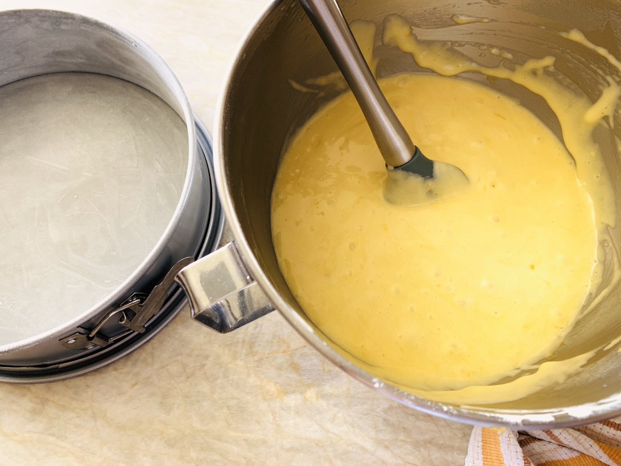 1. Butter and flour 10-inch Springform pan, set aside.  Preheat oven to 350 degrees.  Whisk together flour, baking powder and salt, set aside.
