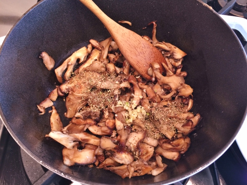 3. Â Add Herbs de Provence and minced garlic, stir to combine. Â Continue to cook mushrooms for 1 minute.