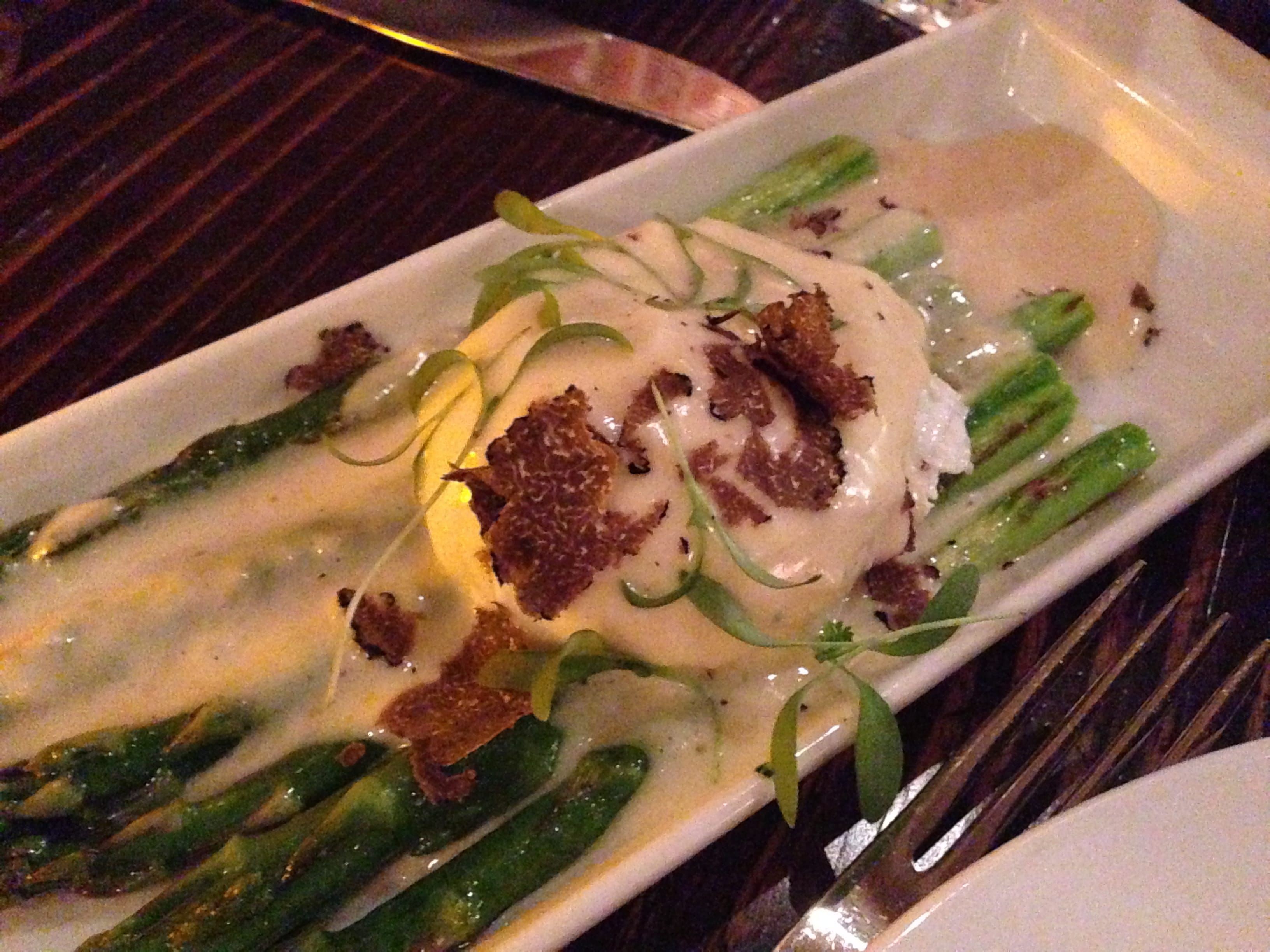 Esparrago (Asparagus) was our next appetizer with poached egg and Manchego cheese sauce with a dash of white truffle oil on top. Who doesn’t love anything with cheese sauce? What else can I say, but this plate was delicious.