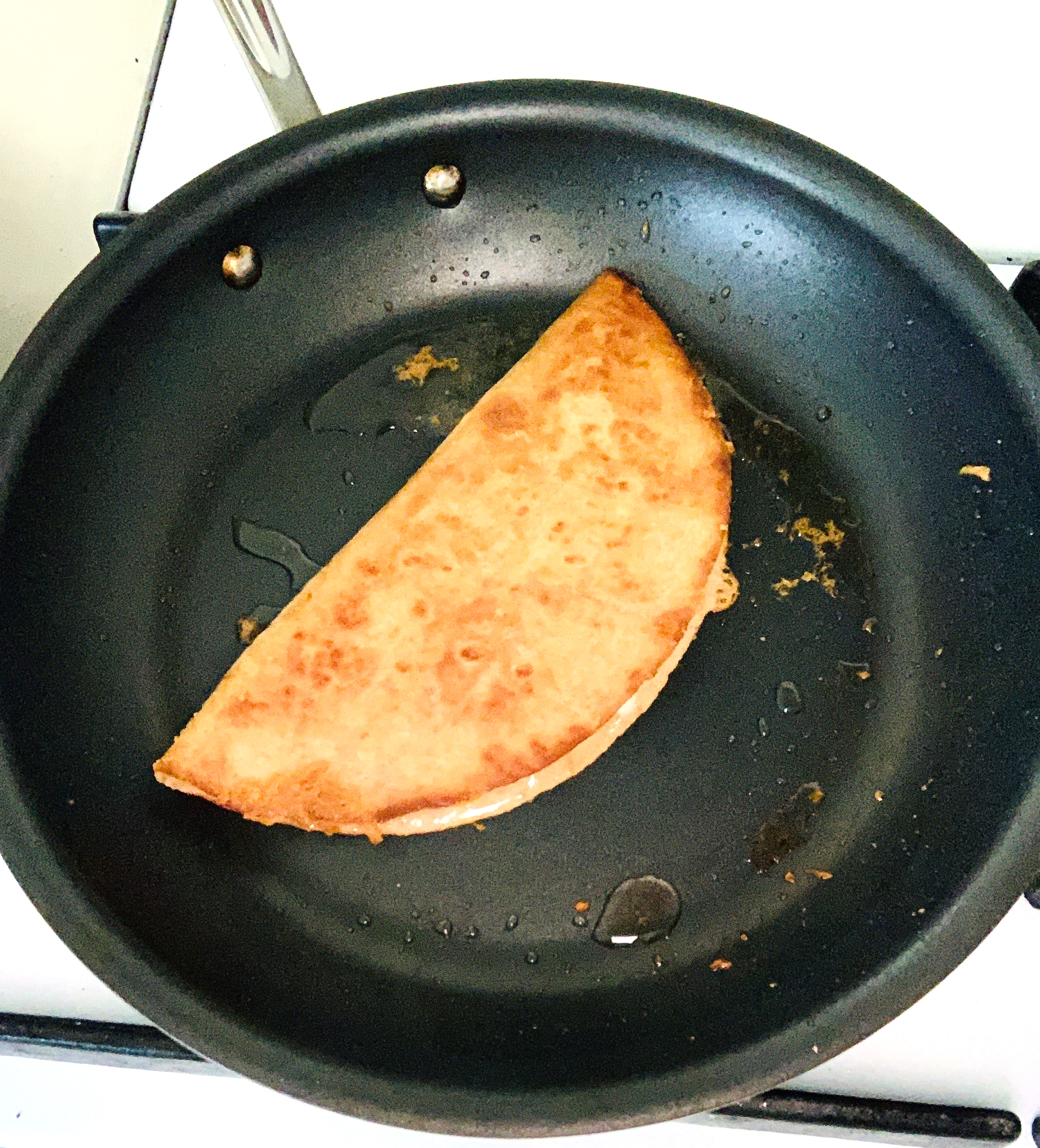 - In a large non-stick skillet, add 1 tablespoon oil and place over medium-high heat. After 2 minutes, add first quesadilla. Cook for 3 minutes, then flip and cook for 3-4 minutes, until golden brown. Remove and place on a paper towel lined plate and put in a 200 degree oven to keep warm. Repeat with remaining quesadillas, adding more oil if necessary.
