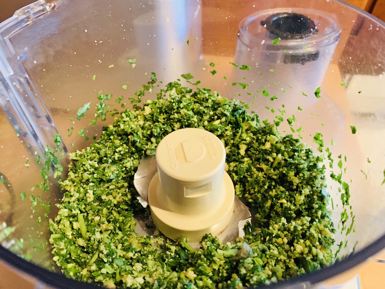 Within minutes you can have a fresh batch of Pesto Sauce to have on hand ready to toss with pasta or spoon over protein.  Make sure you stay tuned for tomorrow’s recipe using my fresh pesto sauce!