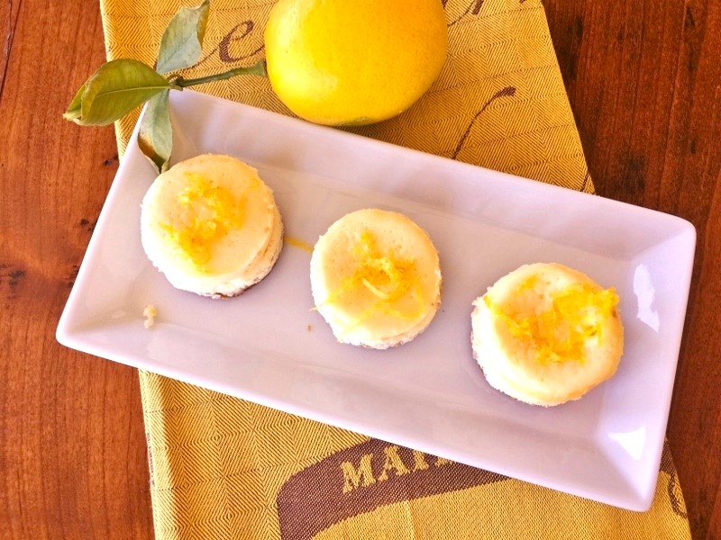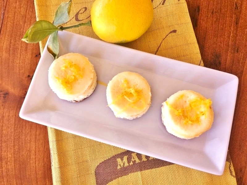 I guess the cheesecake gene rubbed off on me because I enjoy baking cheesecakes too, but sometimes on a smaller scale.  Maybe it’s because these creamy decadent bites make people so happy, but it’s probably because they are so lemony good.  In this recipe, I created a three-biter treat, reminiscent of the first few forkfuls of any good cheesecake.  That way you get the luscious citrus flavor in a couple of compact tastes, and have the option of always coming back for more.