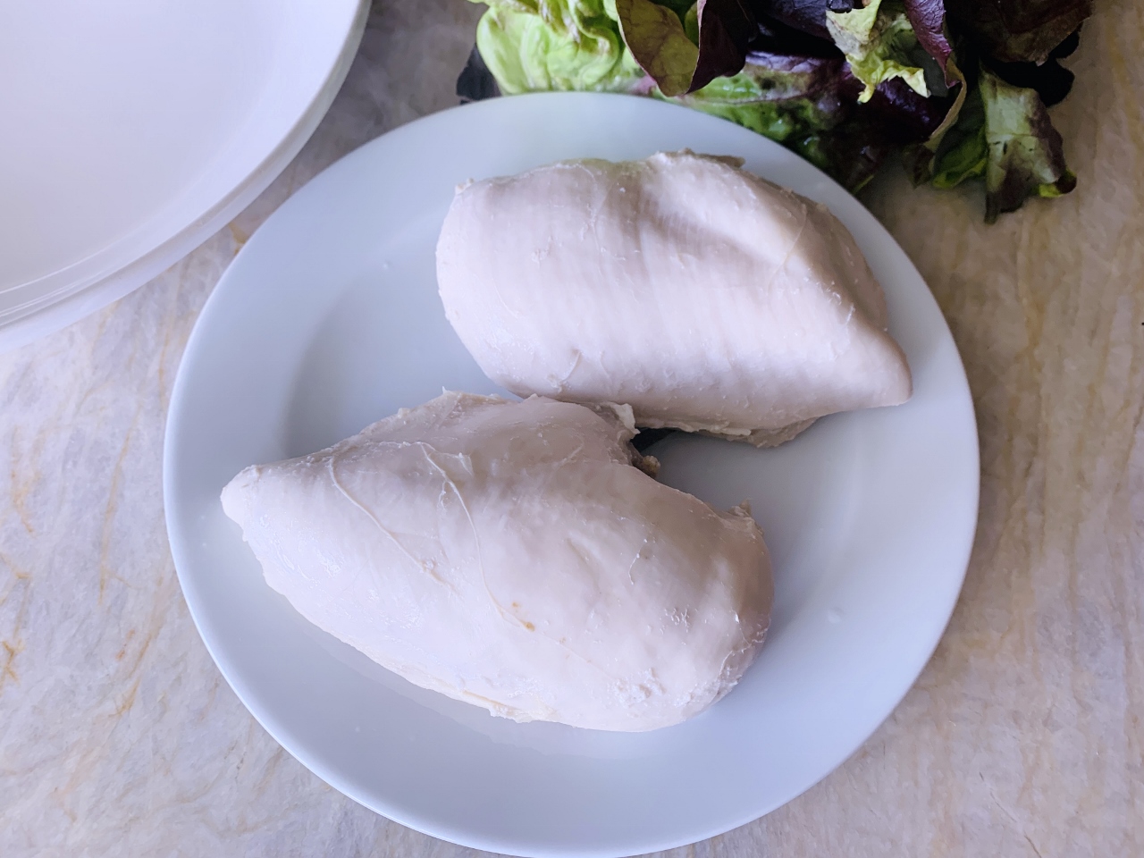 - Slice chicken when cool to touch and place on top of lettuce. Top with strawberries and fresh mint leaves, if desired. Drizzle salad with a few teaspoons of vinaigrette and serve with remaining dressing. Enjoy!