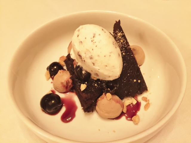 Don’t skip dessert here — Chocolate Torte with Jivarra (Chocolate) Mousseline, Sour Cherries and Toasted Almond Gelato.  The cake had a nice crunchy top, which heightened the softness of the cream.