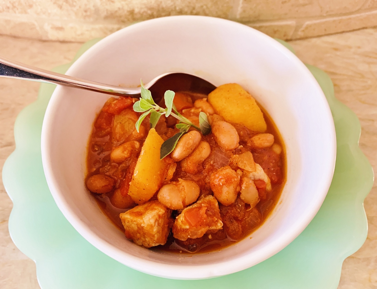 This recipe is a quick weeknight meal because you can make the entire stew in less than a half an hour. It has everything you need; protein, vegetables and good carbs – truly a one-bowl wonder.
