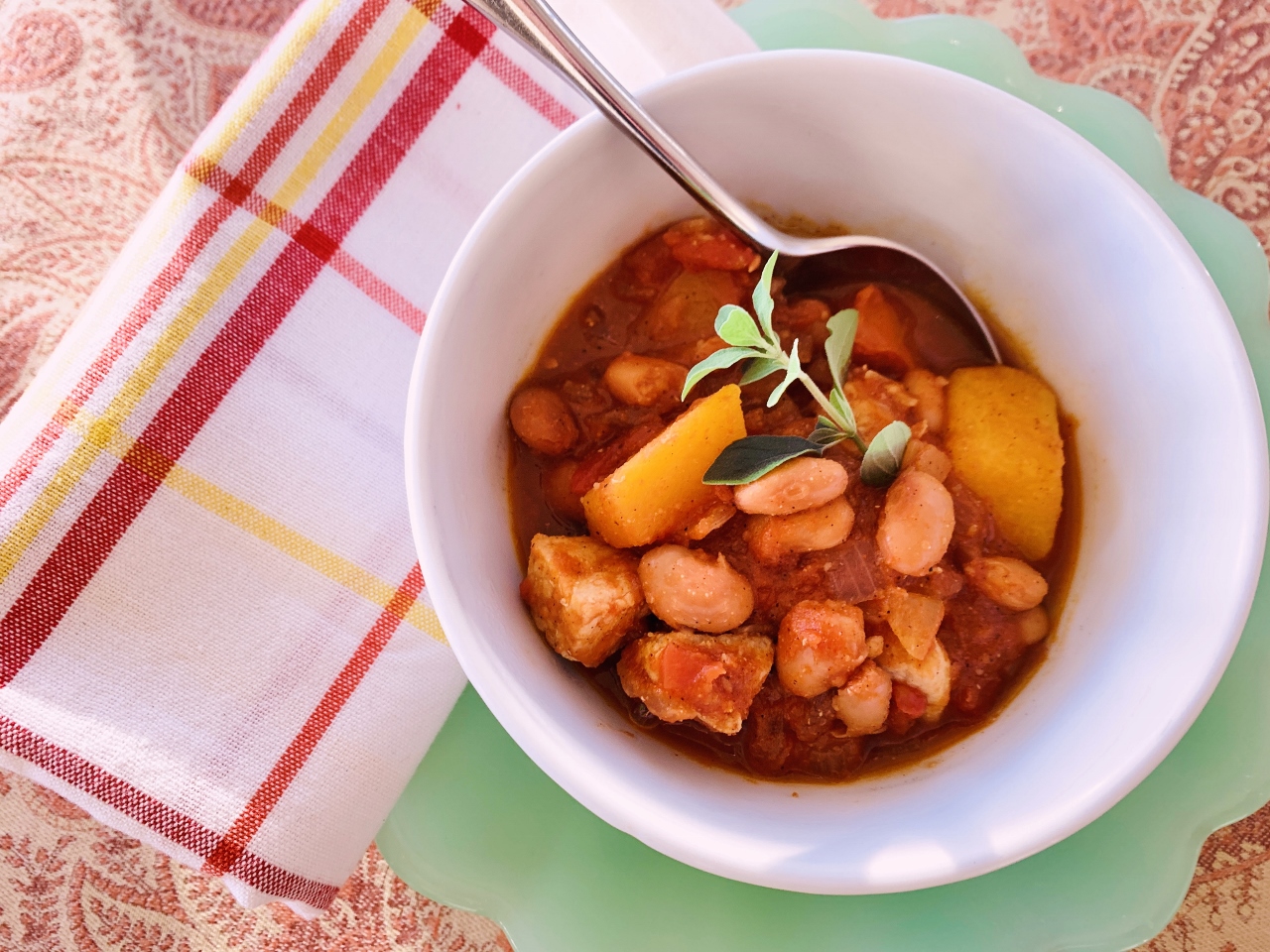 Pork Loin is a very lean cut of meat and dices up nicely to toss into stews. The meat becomes tender over time with a slight chew, which is a preferable contrast when floating around in the same dish with some saucy softened winter squash and beans.