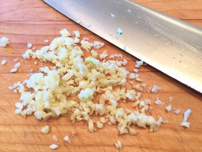 2. Mince garlic and sprinkle it over sliced tomatoes. Sprinkle tomatoes with 1 1/2 teaspoons of salt and 1/2 teaspoon pepper.