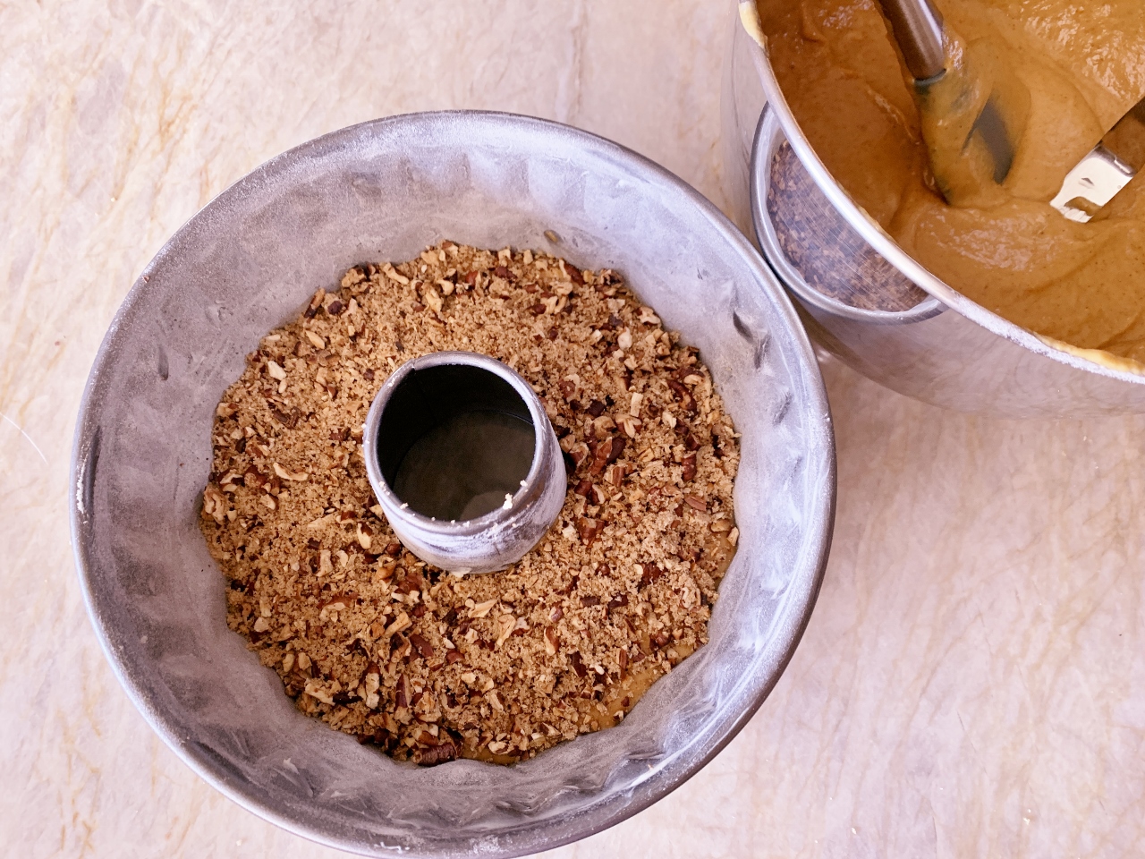 Bundt Cake is a one-bowl wonder for the most part, especially if it’s not frosted or filled. In this recipe, my Pumpkin Bundt has a nutty center and a thick chocolate drizzle, which makes it appealing to not only the pumpkin lovers, but the chocolate lovers alike. This cake is baked in one vessel, as opposed to a layer cake, and it has the most tender crumb you can imagine.
