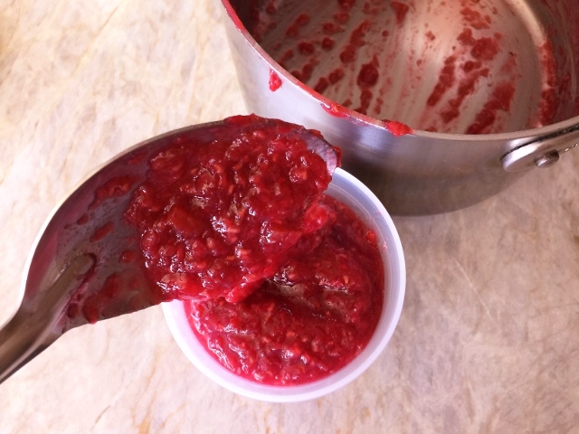 Raspberry preserves are delicately sweet and when combined with rhubarb, take on a slightly different character. When making jams, jellies or preserves, rhubarb is a natural thickener, so there is no need to add pectin to the recipe. This fruity spread is great in sandwiches, or spooned on toast in the morning and especially good over ice cream. I think it would make a great filling for doughnuts and coffeecakes too and with a smear of goat cheese on a cracker.