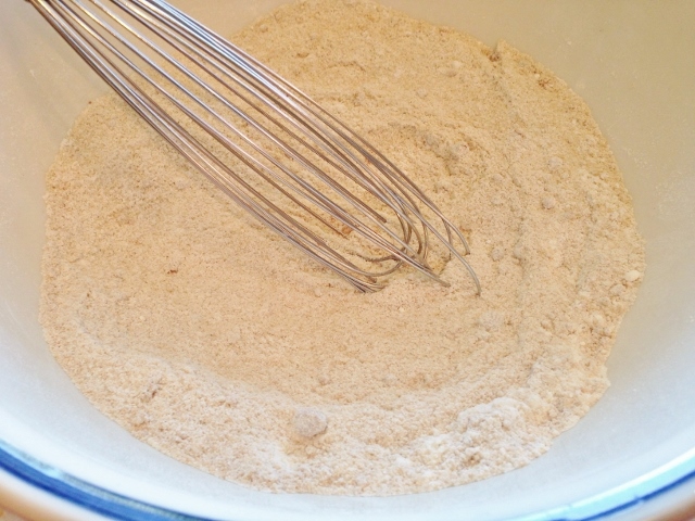 4.  In a bowl, combine flour, sugars and salt.  Whisk to remove any lumps.  Chop pecans into coarse pieces and add them to flour mixture.
