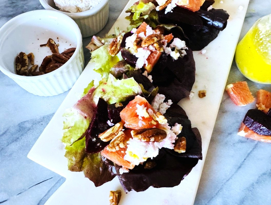 I always love a good salad and these Roasted Beet and Cara Cara Orange Salad Cups make salad night that much more delicious. As we all enjoy a good lettuce wrap, salad cups are versatile and fun to serve for parties or for small gatherings.