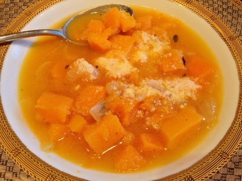 Most of us have tried making Roasted Butternut Squash Soup or at least have eaten it at a restaurant or from a carton or can from the grocery store. The thick orange puree is comforting and slightly sweet, but its flavors are still on the savory side. I like to change it up on occasion and prepare it in different ways by adding spices, leaving it chunky or adding nut milks to the soup.