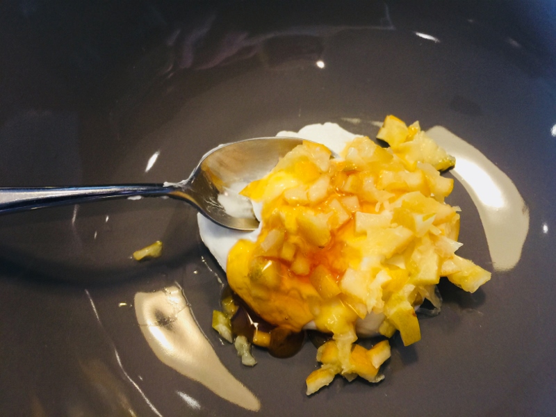 This recipe was made when I was feeling like getting a little creative with yogurt and preserved lemon. For those of you that still have a jar of preserved lemon in your refrigerator – yogurt is a great vehicle to get your inner Picasso on. Presentation is everything and swirling the lemony yogurt around the bowl is just plain fun – try it, you’ll see. If by chance you didn’t prepare any preserved lemons, you can always use the zest and juice of a lemon – you don’t want to miss out on this recipe.