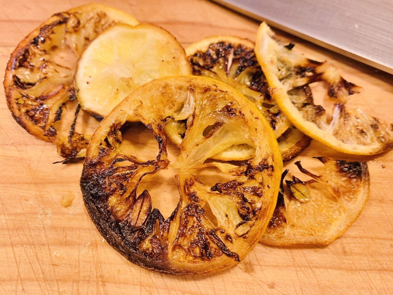 1. Preheat oven to 375 degrees.  Grease a 1-quart oven-safe dish.  Slice lemon and place all, but three slices on a sheet pan.  Toss slices with oil and roast for 8 minutes.  Remove and let cool.