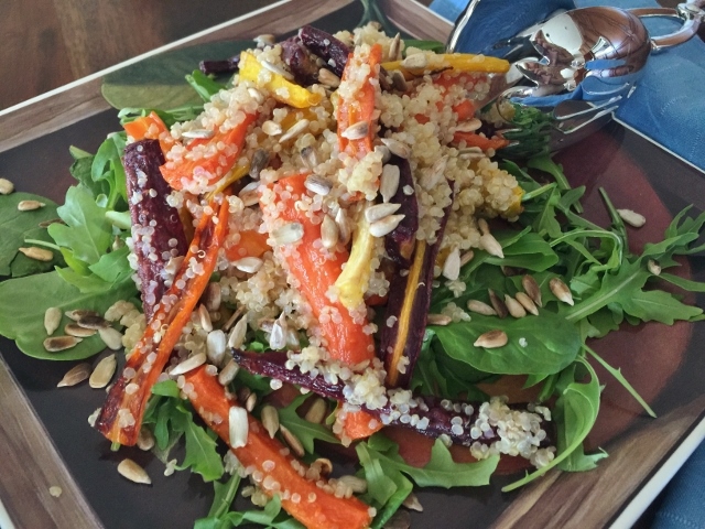 2. Â Remove carrots from the oven and let cool, while you prepare the quinoa according to the package directions. Â Let quinoa cool to room temperature.