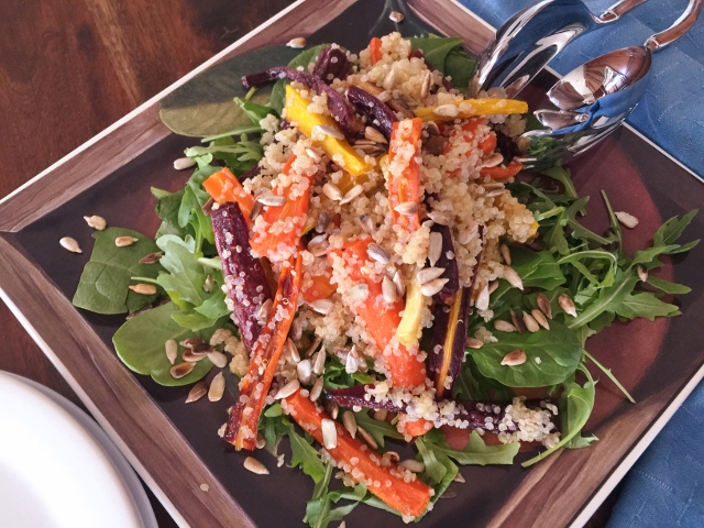 4. Â In a large bowl, combine roasted carrots and quinoa. Â Drizzle the vinaigrette over carrot mixture and toss to combine.