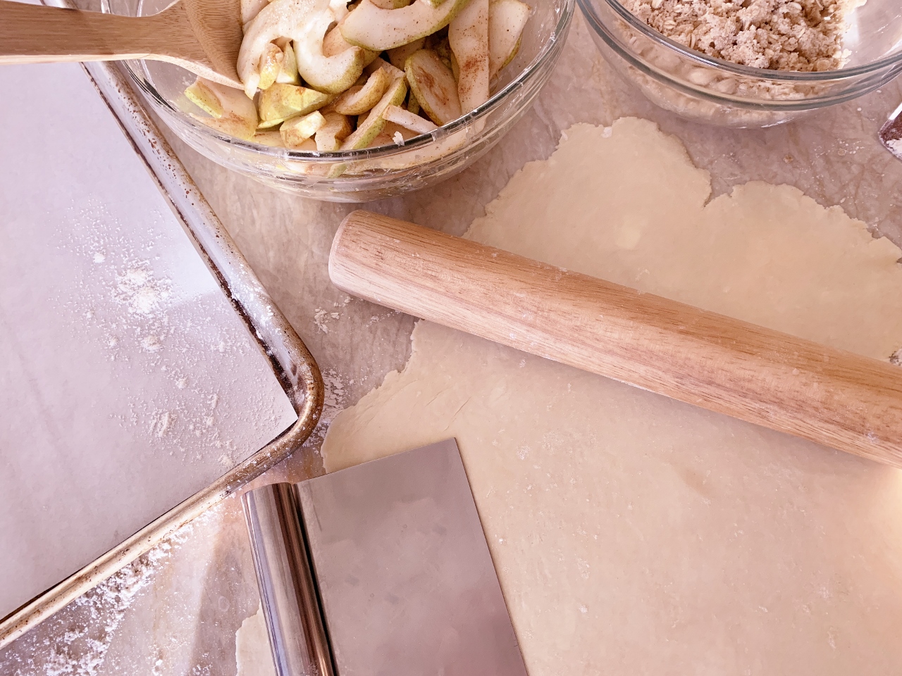 - Add all Filling ingredients to a large bowl and toss to coat pears. Set aside.