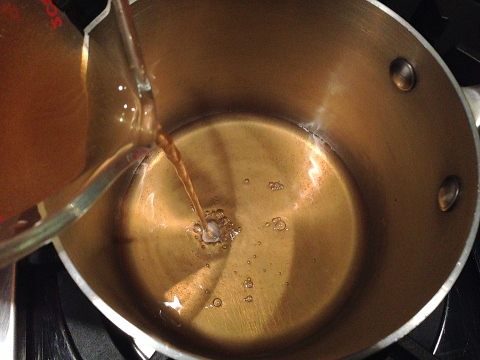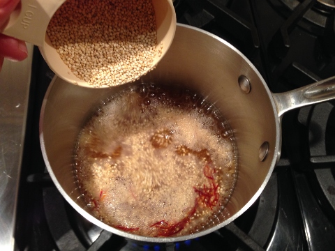 1. In a small saucepan, heat the vegetable broth over medium high heat.