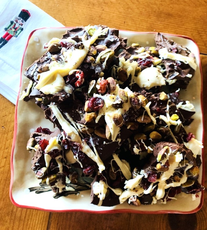 A quick chill in the refrigerator and then it’s ready to break into pieces. I love to share this bark with family and friends over the holiday season. It’s one recipe that you can make quickly over and over again and it stores well in the refrigerator.