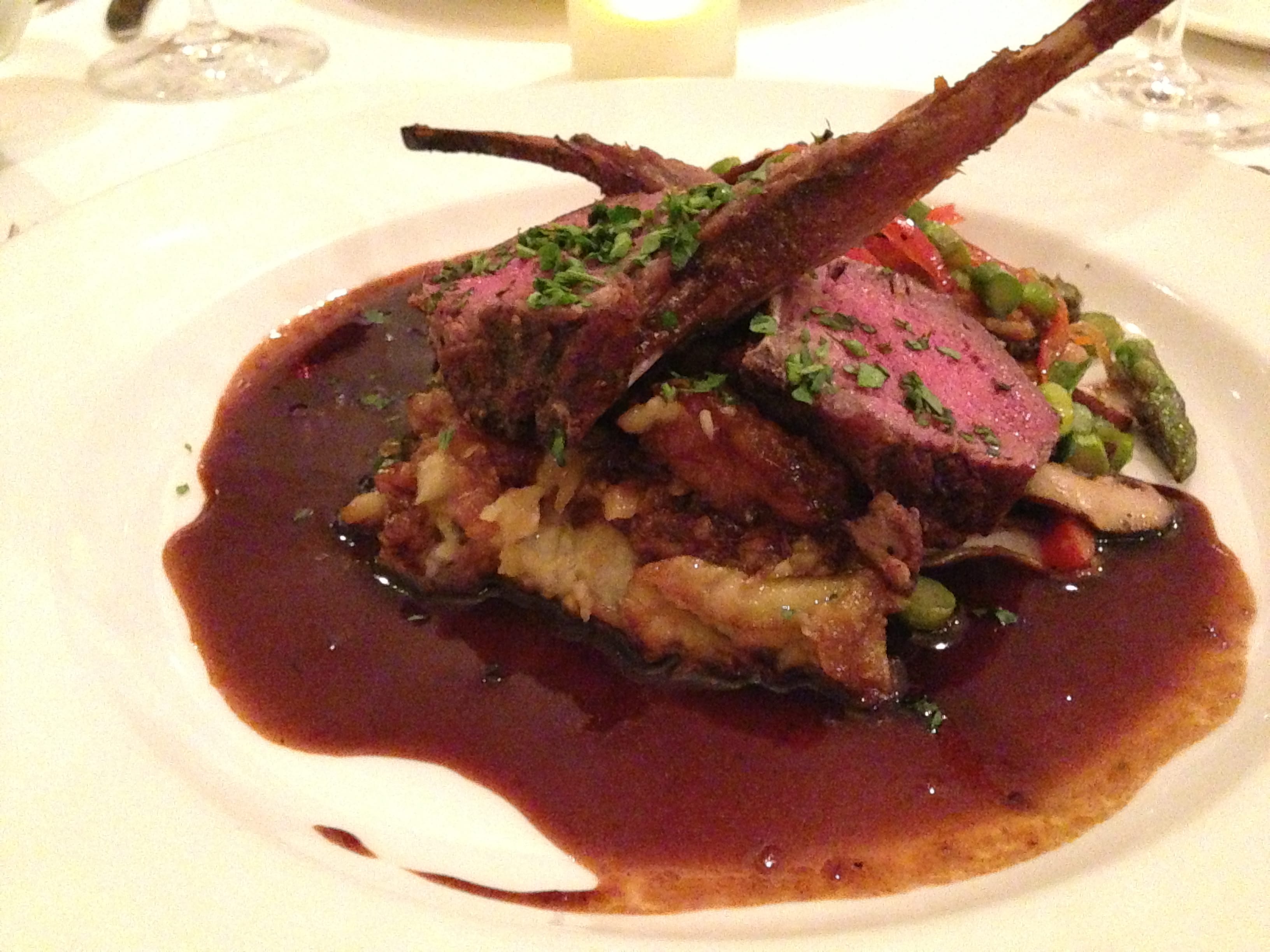 The Rack of Lamb with Sweet and Sour Eggplant and Teriyaki Balsamic was cooked nicely but, the sauce overpowered the meat a tad.