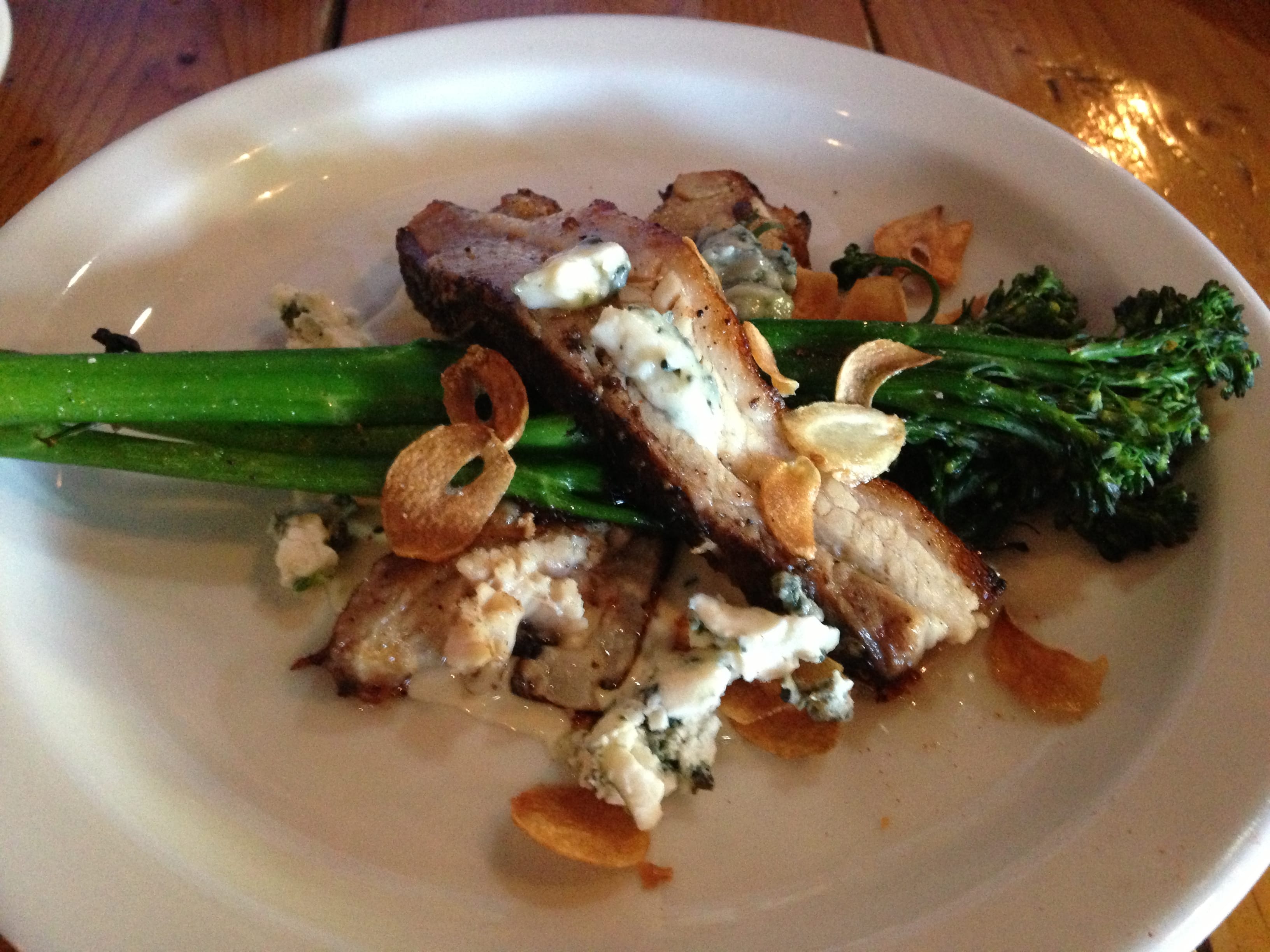 The Pork Belly appetizer was braised, then wood fired with bleu cheese, roasted garlic and broccolini. The pork melted in your mouth with the creamy and smokiness of the cheese. Delicious!