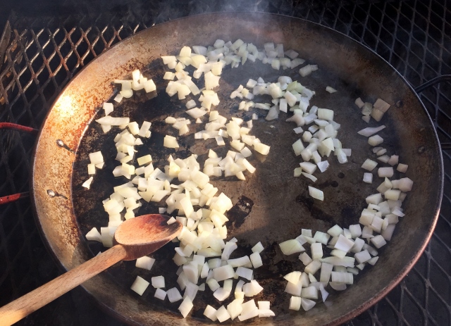 Paella is a Valencian rice dish originating on the east coast of Spain, which is usually cooked over an open flame. The base of Paella is prepared with Bomba rice, which is a Spanish short grain rice found in specialty stores, or online. The Soccarat, or crust formed on the bottom of a Paella, is a true artform and separates a good Paella from a great Paella.