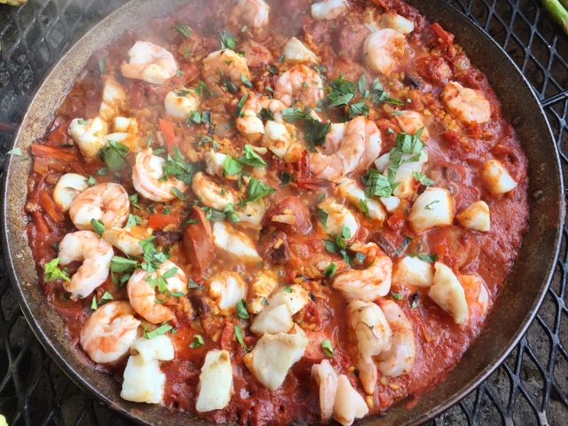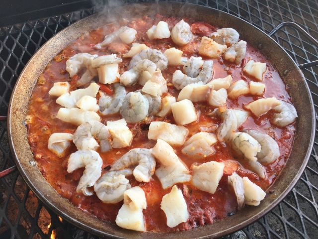 While in Spain, I’ve enjoyed several types of Paella, from lamb to chicken and even vegetarian. However, I do have a favorite, which is Seafood & Sausage Paella on the Grill. This recipe has a mix of two kinds of seafood – wild cod and prawns – as well as Spanish chorizo and kielbasa. I love the contrasting sweetness of the fish with the smoky sausage, it just gives an excellent balance to the dish.