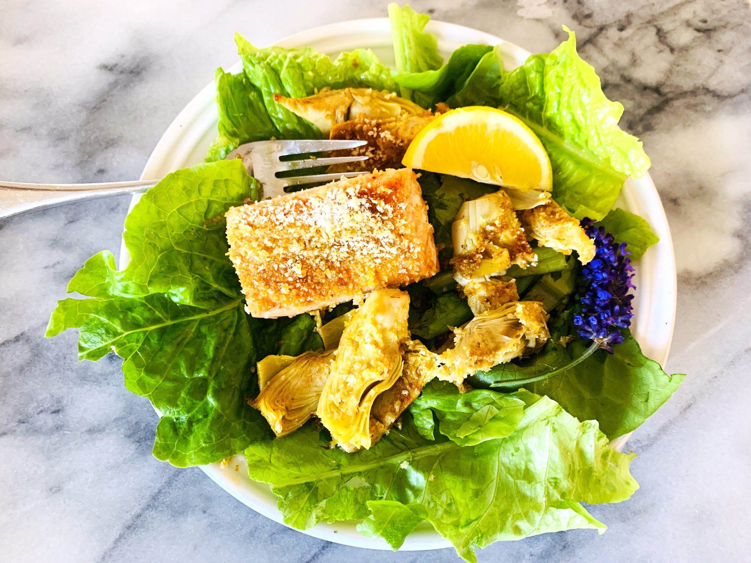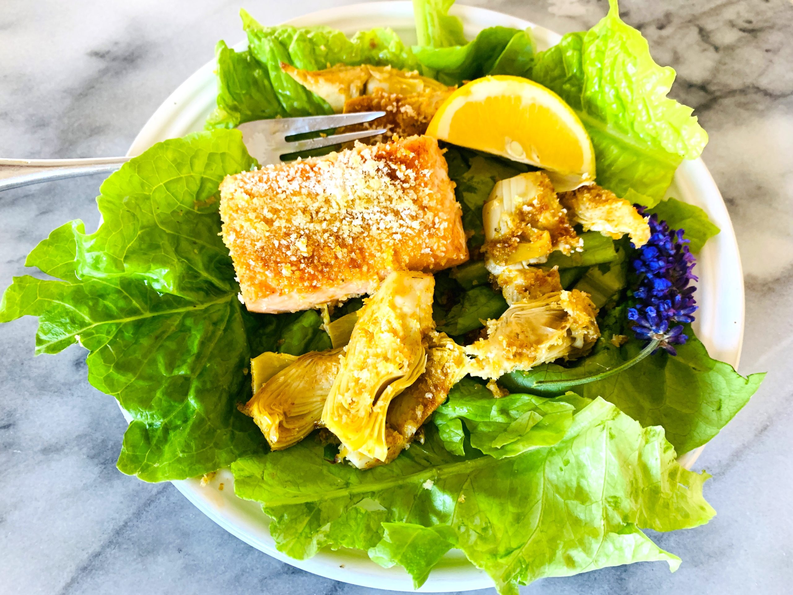 - Top salmon with panko and sprinkle remaining over artichokes. Bake in oven for 18-22 minutes, depending upon thickness of salmon.