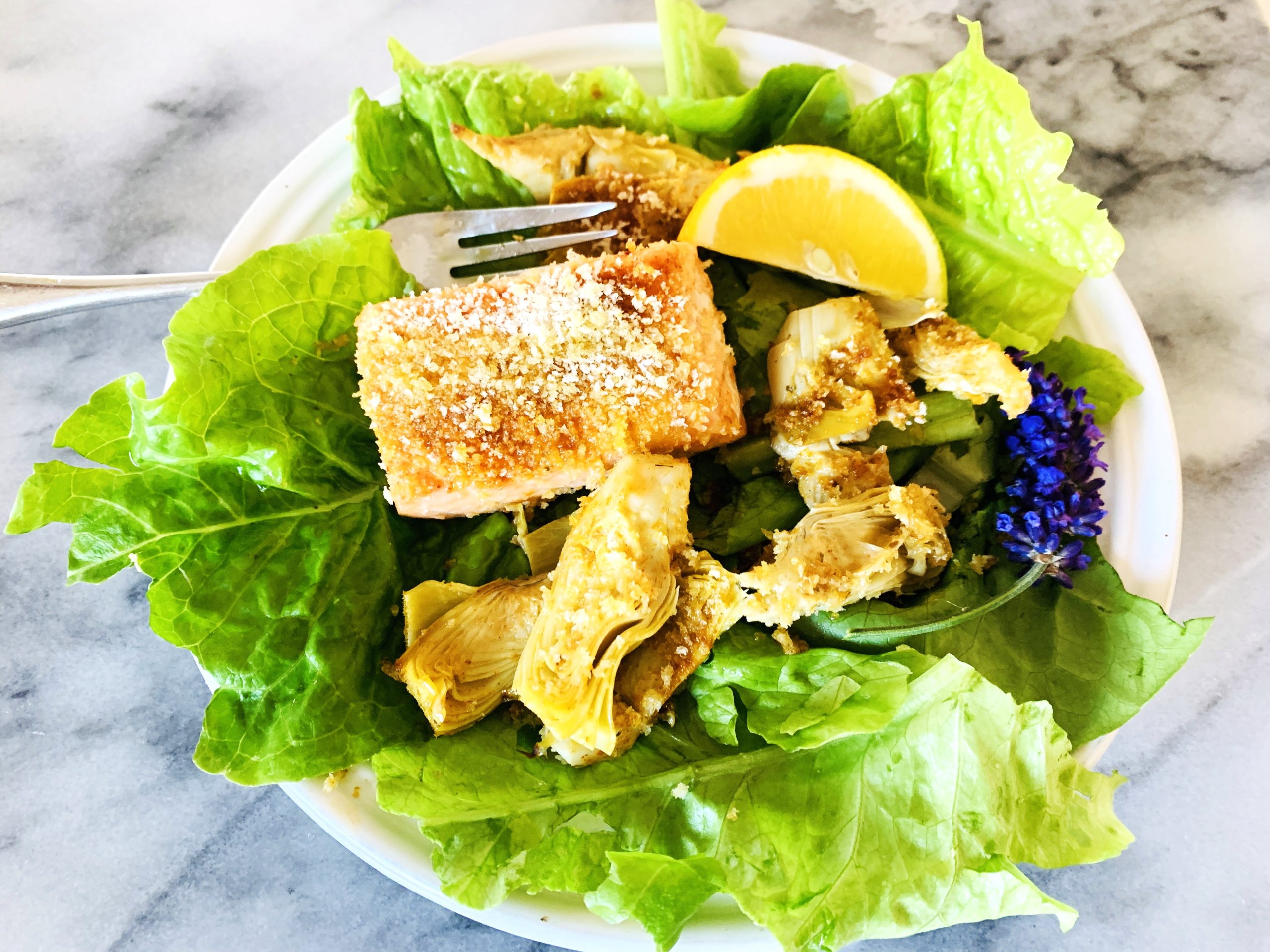 - Top salmon with panko and sprinkle remaining over artichokes. Bake in oven for 18-22 minutes, depending upon thickness of salmon.