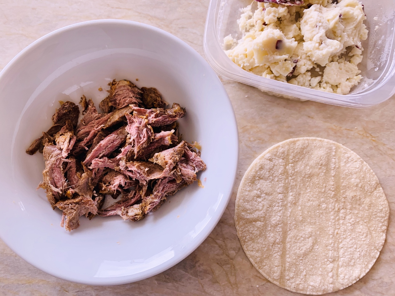 I’m all about using up leftovers and I mentioned in Saturday’s post about repurposing some of the Slow-Cooker Vietnamese Style Pot Roast for another recipe. Shredding up roast beef is an easy task and adding it to a tortilla, along with some mashed potatoes that you may have paired with the beef, or had for another dinner over the weekend are all that’s needed to make tasty taquitos. Soft corn tortillas are easily filled with these two items from the refrigerator, and can be a most delightful meal in minutes.