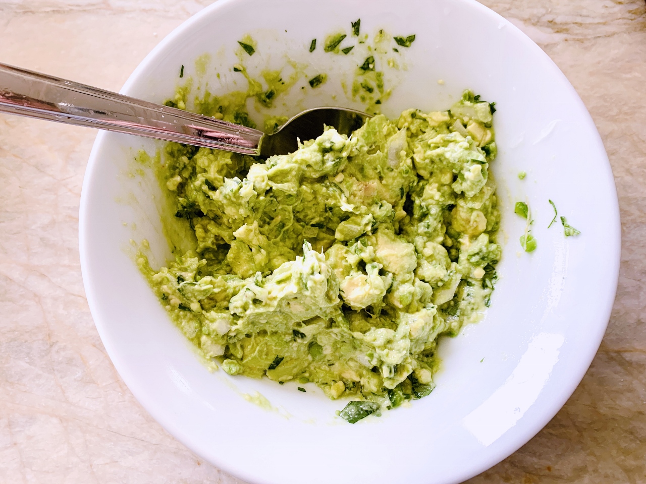My guacamole is rustic and a little spicy because that’s the way I like it. You can always tame it down by omitting some seeds from the jalapeno, but the heat is half the fun. A squeeze of lemon or lime, some onions and freshly chopped cilantro added to a diced avocado is all it takes to make a great dipping condiment for these taquitos. The whole dish is made in 15 minutes or less, and you can enjoy it for lunch, or dinner depending upon your cravings.