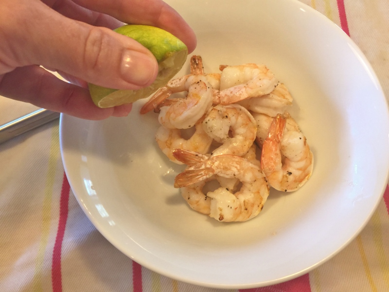 1. Toss the shrimp in 1 tablespoon of olive oil and a pinch of salt and pepper. Grill or broil 2 minutes on each side, remove. Squeeze the juice of 1/2 lemon over the top.