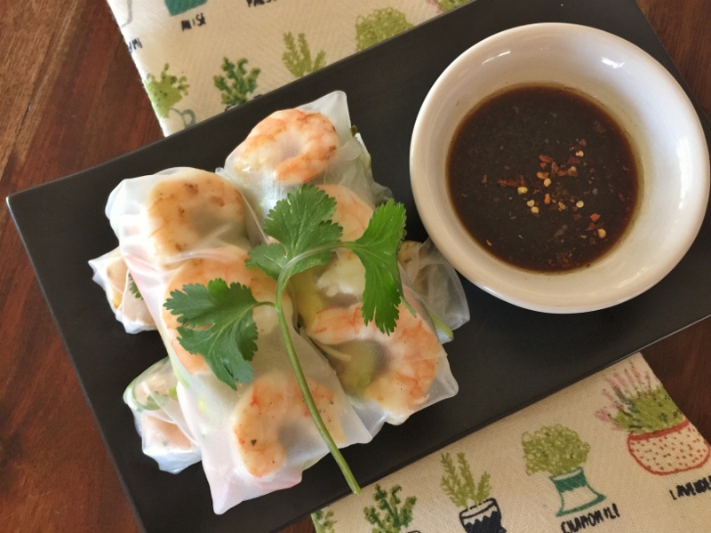 A quickly prepared dipping sauce with a pinch of heat, adds to the Asian flavors and provides the perfect companion to these spring rolls. These make a great lunch, appetizer or light dinner and I think they would be nice with my Miso Soup recipe.
